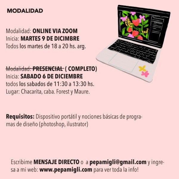 Brindar un espacio de encuentro para llevar adelante una idea y transitar el proceso de transformarla en un diseño para estampar. Abordaremos las distintas instancias del proceso en clases grupales regulares en vivo vía zoom.